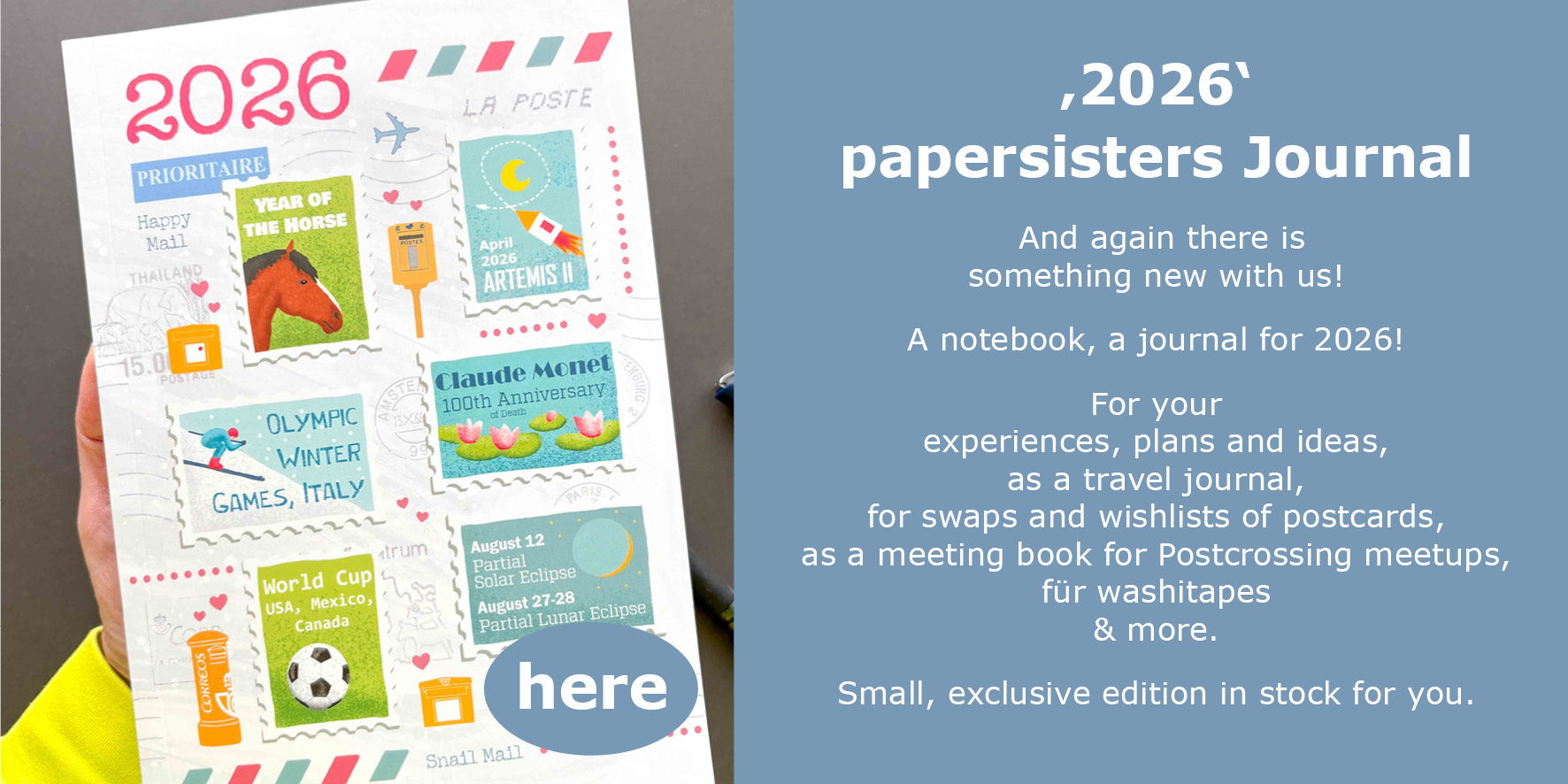 Two sisters. Since ever. We love postcards. Almost since ever. And we became postcrossers more than 10 years ago. We are passionate travellers, love to explore and try new things with a soft spot for great design and anything mail related. We created papersisters based on what we love to do.