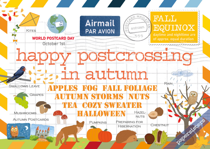 Happy Postcrossing - sending postcards around the world is much fun all year long. In autumn when we start to spend more time indoors is a great time for postcard lovers - enjoy the beauty of autumn!