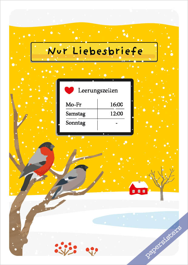 The yellow postcard featuring a German letterbox! The journey of many postcards in Germany begins in a yellow letterbox like this. This one comes up in a lovely winter design.