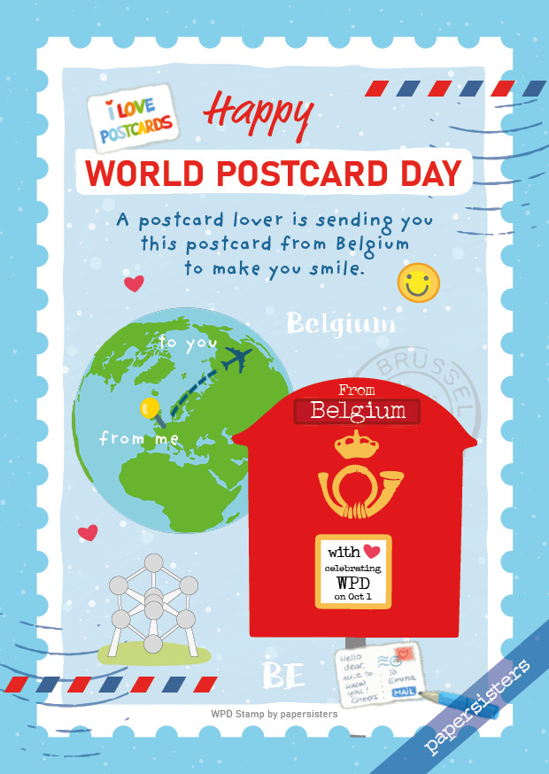 We have designed this postcard with great pleasure for all postcard lovers in Belgium. It is part of the international “WPD Stamp Series” and is perfect for sending a little love and compassion for World Postcard Day. Also great for collecting and swapping.