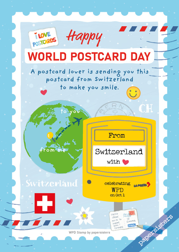 We have designed this postcard with great pleasure for all postcard lovers in Switzerland. It is part of the international “WPD Stamp Series” and is perfect for sending a little love and compassion for World Postcard Day. Also great for collecting and swapping.