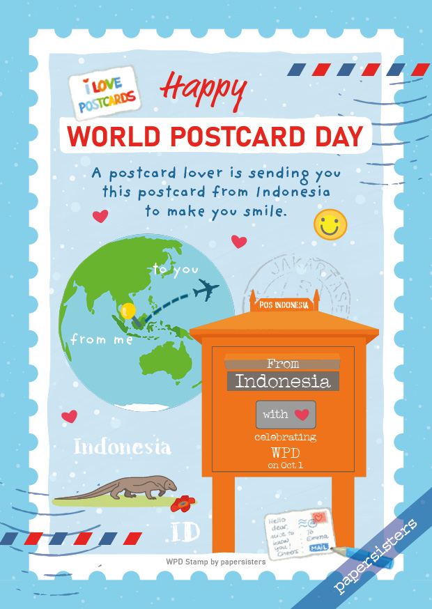 We have designed this postcard with great pleasure for all postcard lovers in Indonesia. It is part of the international “WPD Stamp Series” and is perfect for sending a little love and compassion for World Postcard Day. Also great for collecting and swapping.