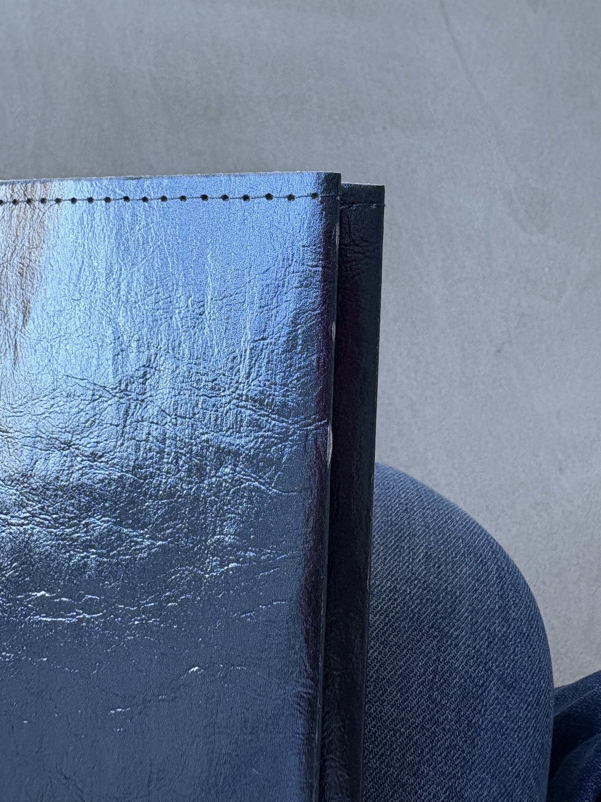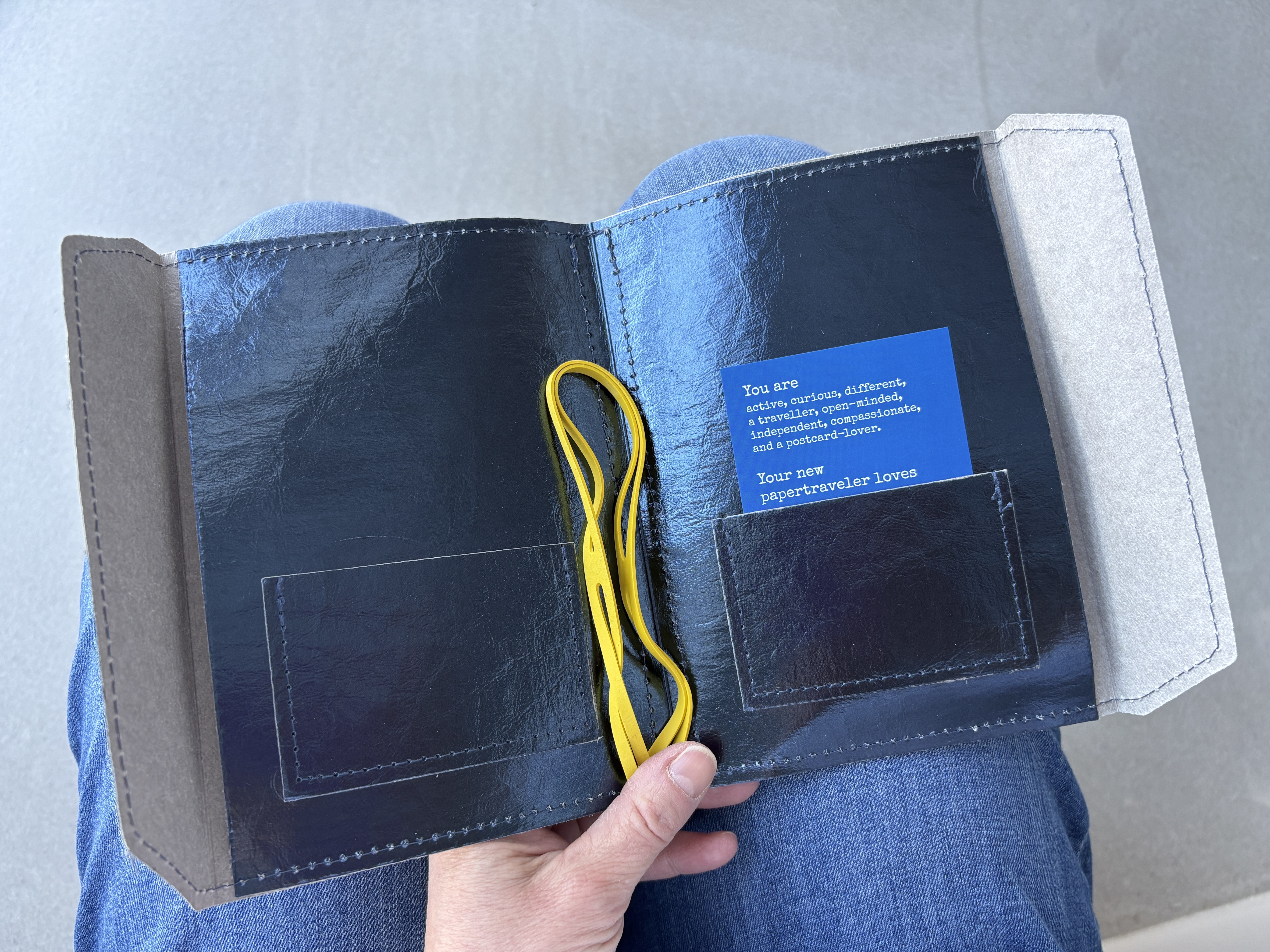 Der papertraveler der "Special Edition nightblue" ist außen tief dunkelblau und hat einen metallischen Glanz. Das Material hat ganz eigenen, starken Charakter, den wir einfach lieben. Es ist unregelmäßig, hat Falten und manchmal sogar Unvollkommenheiten. Manchmal kann man sogar das graue Innere sehen. Die Schnittkanten sind oft rau. Wir haben viele Bilder beigefügt, damit Du Dir einen guten Eindruck verschaffen kannst. Auf der Rückseite findet sich die typische papertraveler Prägung. Wir haben den papertraveler in dieser neuen Farbe, in dem neuen Material in den letzten Wochen getestet und freuen uns ihn hier - wenn auch nur in einer kleinen Stückzahl - anbieten zu können.