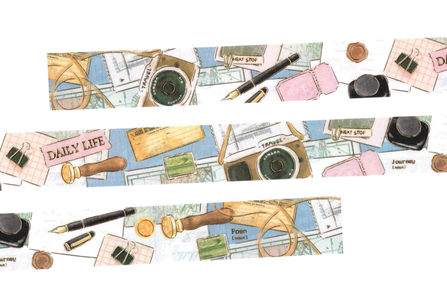 Endlich wieder verfügbar! Das herrliche Masking Tape "Traveler" nimmt Euch mit auf Reisen! Das perfekte Tape für Post und Planner. Mit glitzernden Highlights.
