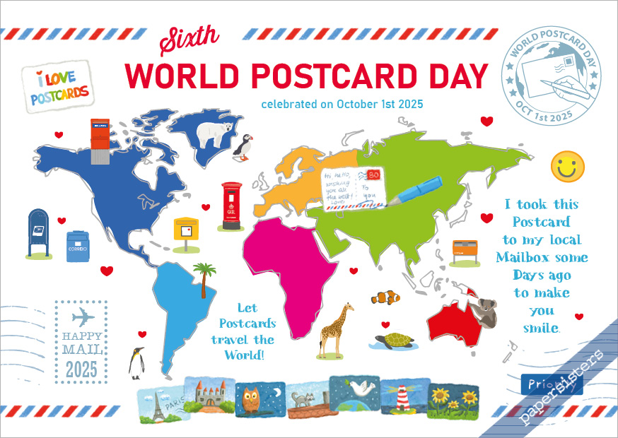 Das sechste Jahr World Postcard Day - die sechste besondere Postkarte als Limited Edition zu diesem Anlass aus dem Hause papersisters. Wir sind fest davon überzeugt, dass Postkarten Menschen auf eine wunderbare Weise verbinden über Ländergrenzen hinweg. Es sind kleine Boten der Freundschaft und der Völkerverständigung. Und so freuen wir uns sehr, uns mit vielen Postkartenbegeisterten auf der Welt ganz besonders am 1. Oktober verbunden zu wissen! Wisst Ihr, warum gerade am 1. Oktober World Postcard Day gefeiert wird? Am 1. Oktober 1869 machte sich die erste Postkarte in Österreich - Ungarn auf den Weg - der Beginn einer weltweiten Erfolgsgeschichte! Auch heute, im 21. Jahrhundert, wird die Postkarte noch geliebt. Ob als Urlaubs- oder Glückwunschkarte, and Freunde, Verwandte oder Fremde, innerhalb eines Landes verschickt oder rund um die Welt - die Auswahl und Vielfalt ist riesengroß. Am 1. Oktober 2019 feierten viele Menschen den 150. Geburtstag der Postkarte - dieser Tradition folgend rief Postcrossing den 1. Oktober zum World Postcard Day aus. Wir feiern mit einer besonderen Limited Edition Postkarte - Euch einen schönen 6. World Postcard Day!