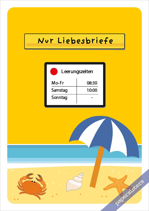 Die Postkarte zum Briefkasten! Die Reise vieler Postkarten in Deutschland beginnt in einem solchen gelben Briefkasten. Dieser hier hat sich passend zur Urlaubssaison - und eigentlich für das ganze Jahr - einen Strand-Look zugelegt!