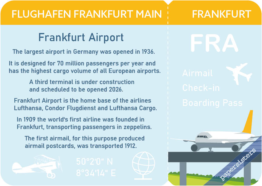 Eine ganz besondere Postkarte über den Frankfurter Flughafen in Form einer Bordkarte.