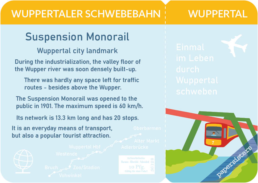Eine ganz besondere Postkarte über die Schwebebahn in Wuppertal in Form einer Bordkarte.