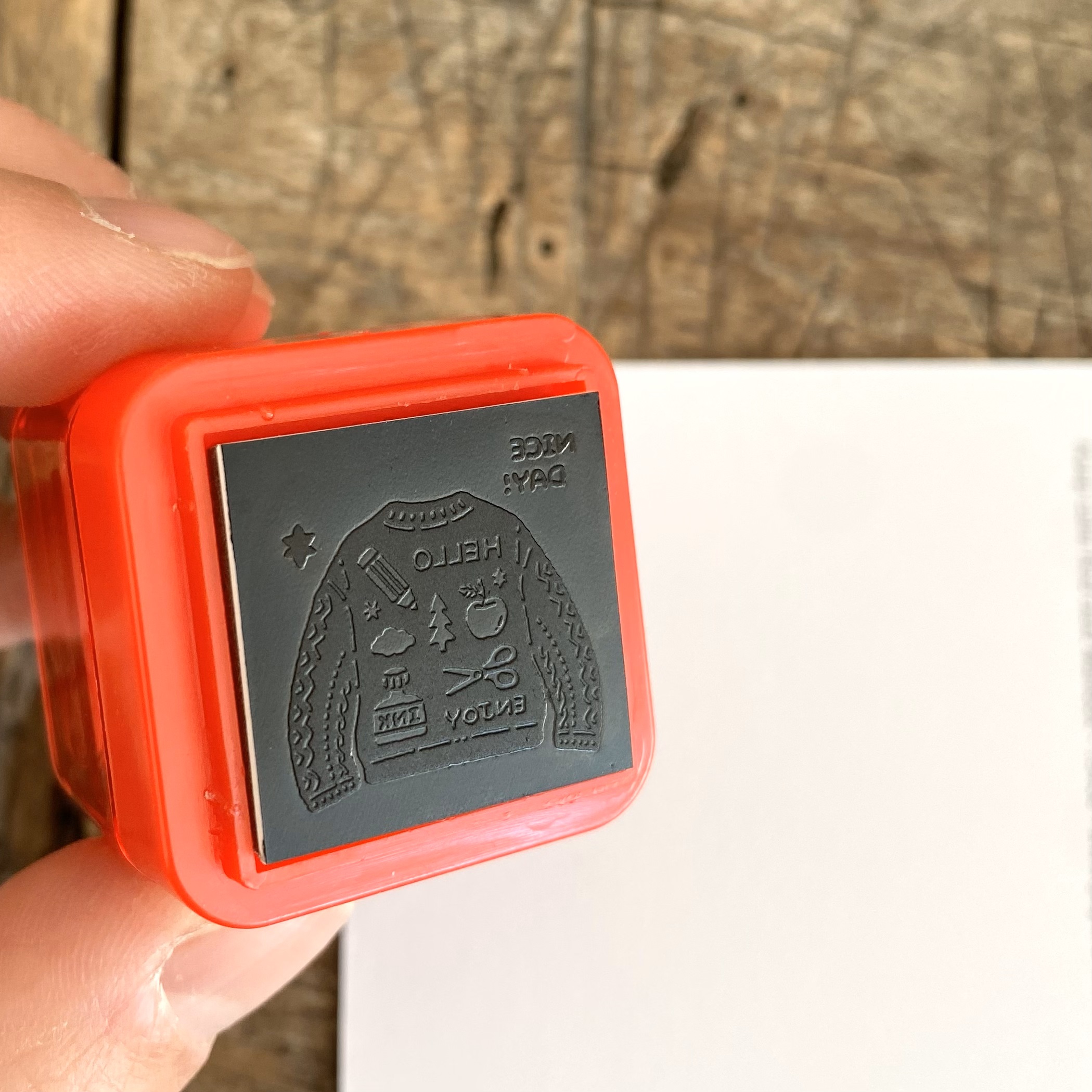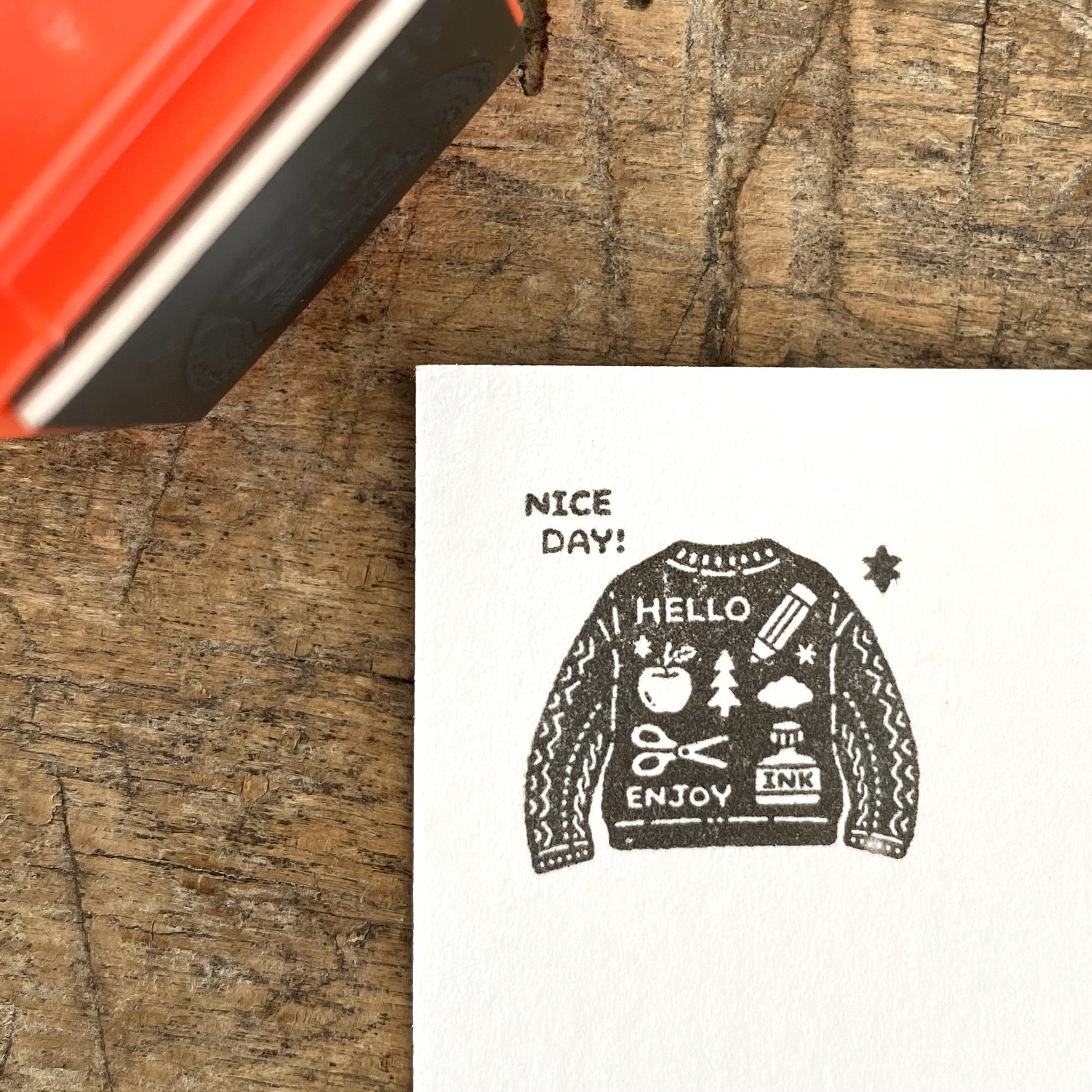 Ein kleines Deko-Schätzchen ist dieser Stempel "Cozy Sweater" - er verbreitet sofort ein wohlig-gemütliches Feeling. Der Stempel ist ein Permastempel mit integrierter Tinte und benötigt so kein extra Stempelkissen. Smart und schön, finden wir!