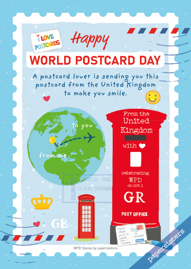 Für alle Freunde der Postkarte in Großbritannien haben wir mit viel Freude dieses Design entworfen. Es ist Teil der internationalen "WPD Stamp Serie" und perfekt geeignet, um zum World Postcard Day Freude zu verschicken. Großartig auch zum Sammeln und Tauschen.
