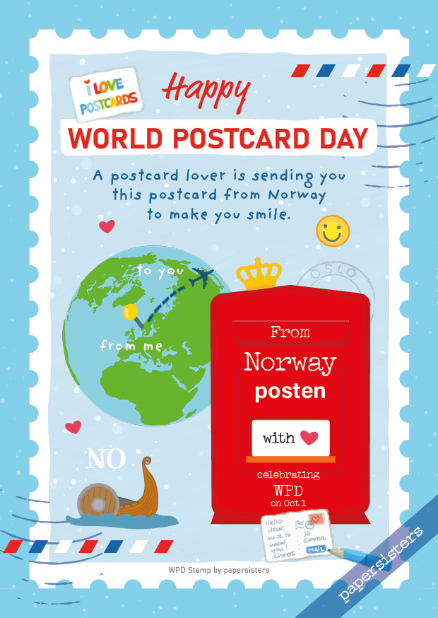 Für alle Freunde der Postkarte in Norwegen haben wir mit viel Freude dieses Design entworfen. Es ist Teil der internationalen "WPD Stamp Serie" und perfekt geeignet, um zum World Postcard Day Freude zu verschicken. Großartig auch zum Sammeln und Tauschen.