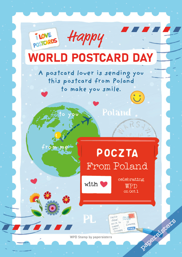 Für alle Freunde der Postkarte in Polen haben wir mit viel Freude dieses Design entworfen. Es ist Teil der internationalen "WPD Stamp Serie" und perfekt geeignet, um zum World Postcard Day Freude zu verschicken. Großartig auch zum Sammeln und Tauschen.