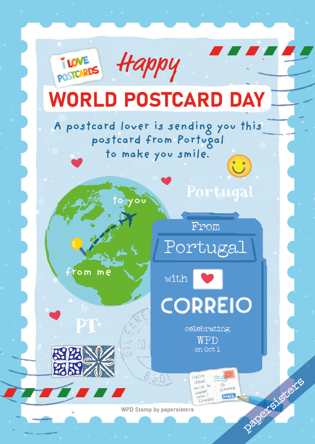 Für alle Freunde der Postkarte in Portugal haben wir mit viel Freude dieses Design entworfen. Es ist Teil der internationalen "WPD Stamp Serie" und perfekt geeignet, um zum World Postcard Day Freude zu verschicken. Großartig auch zum Sammeln und Tauschen.