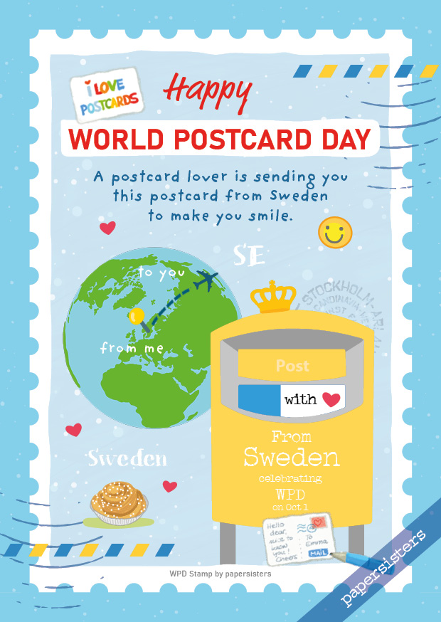 Für alle Freunde der Postkarte in Schweden haben wir mit viel Freude dieses Design entworfen. Es ist Teil der internationalen "WPD Stamp Serie" und perfekt geeignet, um zum World Postcard Day Freude zu verschicken. Großartig auch zum Sammeln und Tauschen.