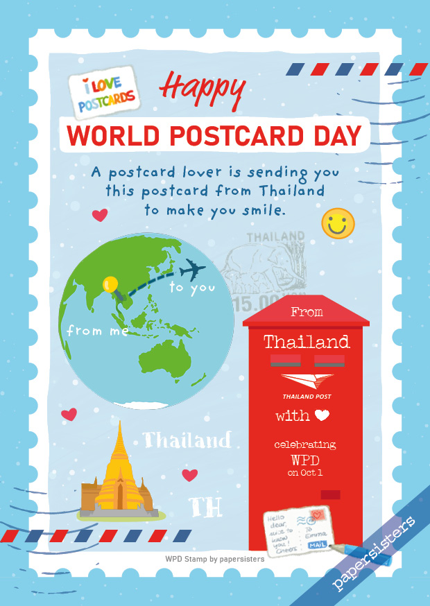 Für alle Freunde der Postkarte in Thailand haben wir mit viel Freude dieses Design entworfen. Es ist Teil der internationalen "WPD Stamp Serie" und perfekt geeignet, um zum World Postcard Day Freude zu verschicken. Großartig auch zum Sammeln und Tauschen.