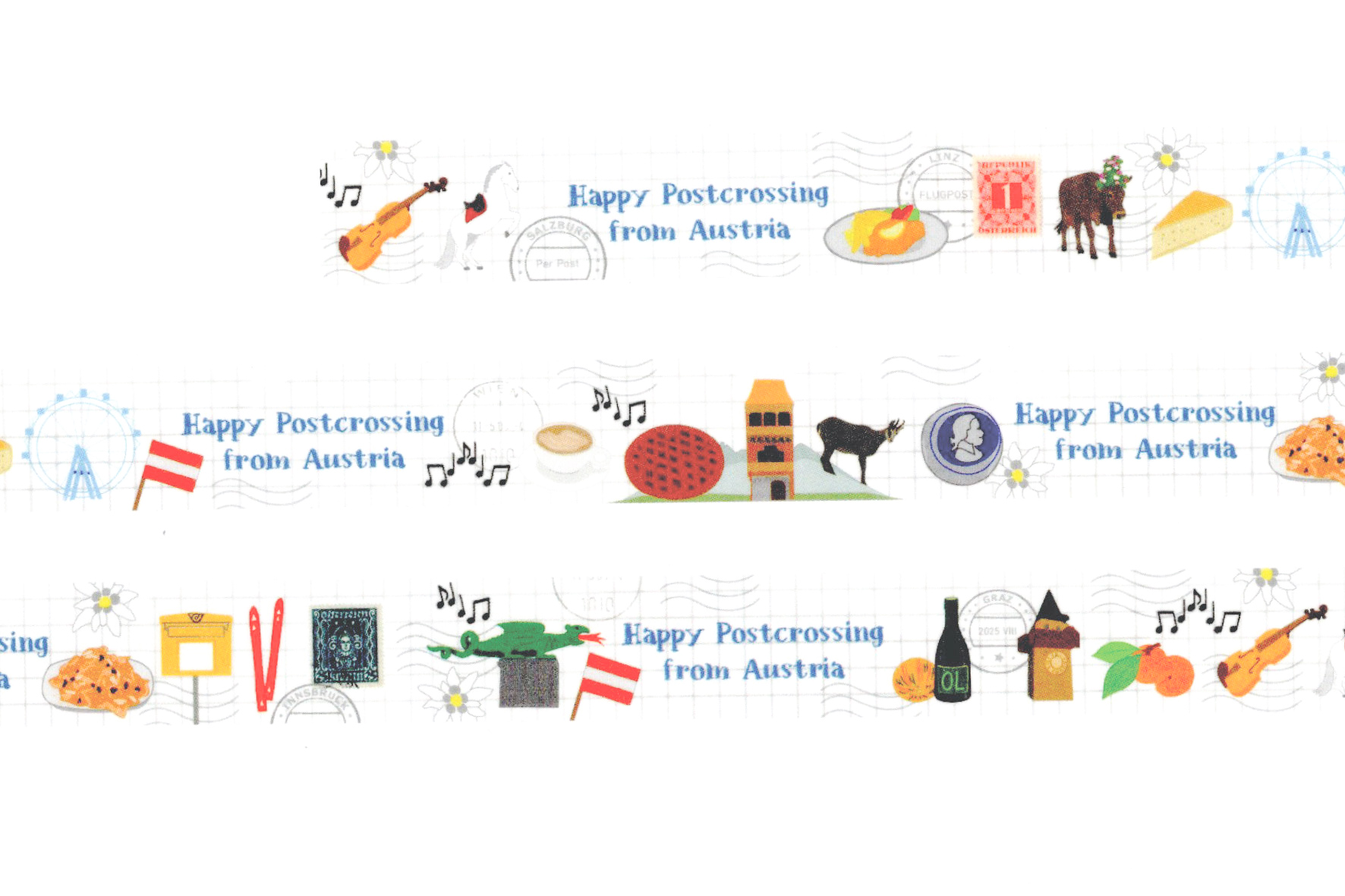 For our dear friends of Postcrossing in Austria - we are happy to offer you a beautiful tape that features some icons of your country to decorate cards sent via Postcrossing. Typical papersisters style included. Enjoy!