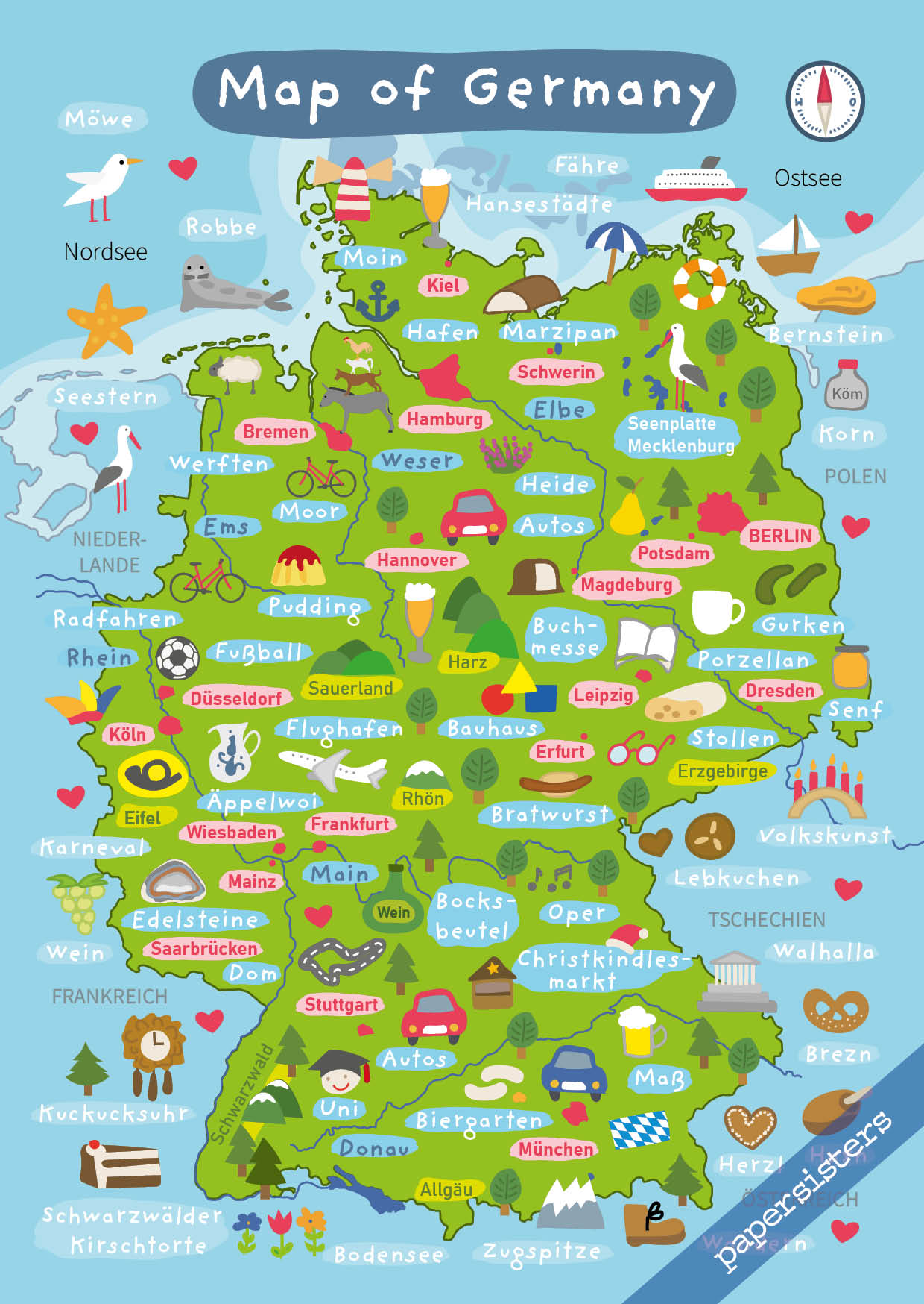 It's colorful, cute and oh so much to see - our “Map of Germany” postcard. We invite you on a journey across Germany. There are many sights to discover, many specialties to try! This really cheerful map gives you and interested people all over the world a brief overview.