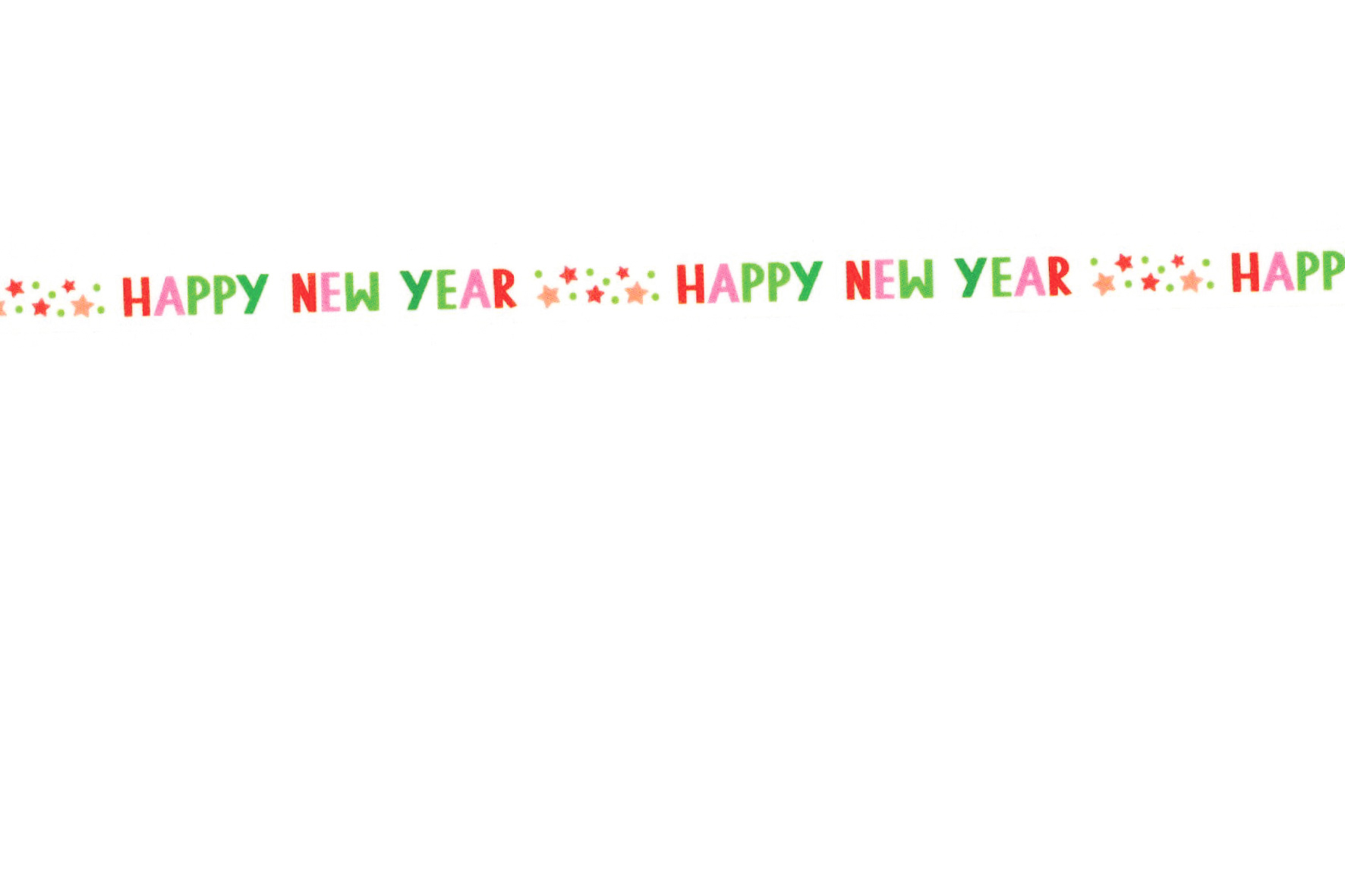 Start the new year off right! This bright slim “Happy New Year” tape in red, pink, and green is perfect for your New Year's mail.