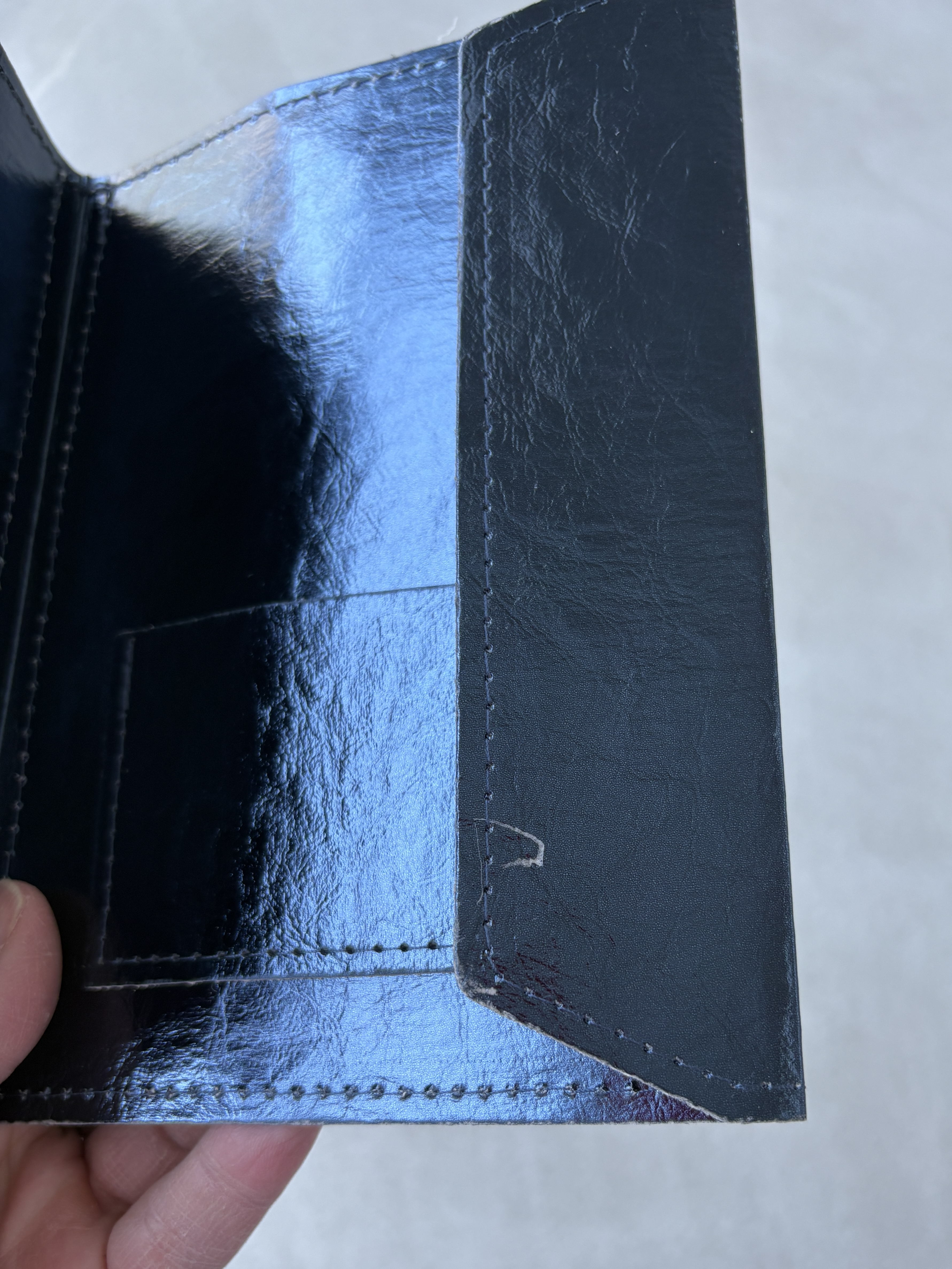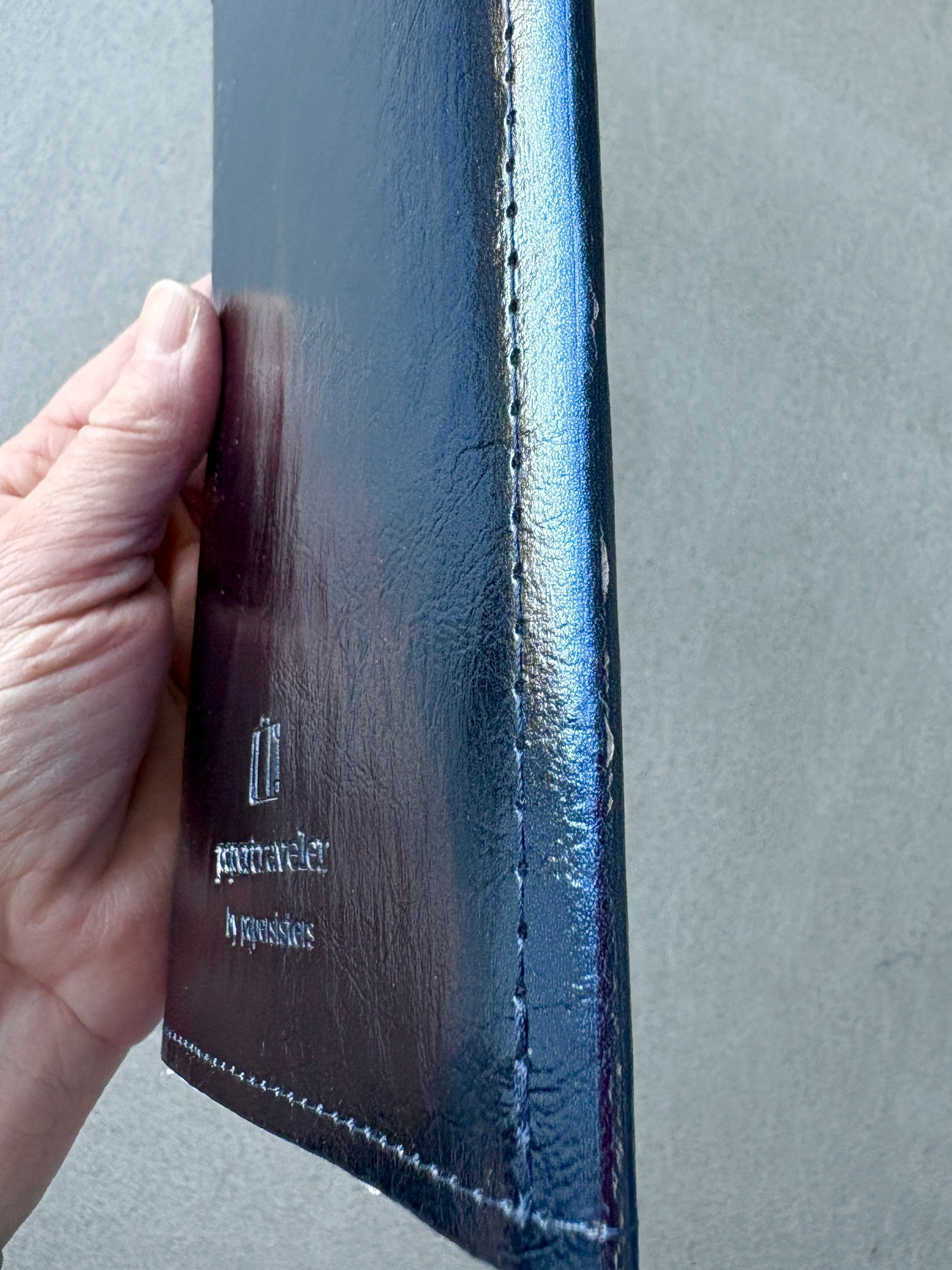 Der papertraveler der "Special Edition nightblue" ist außen tief dunkelblau und hat einen metallischen Glanz. Das Material hat ganz eigenen, starken Charakter, den wir einfach lieben. Es ist unregelmäßig, hat Falten und manchmal sogar Unvollkommenheiten. Manchmal kann man sogar das graue Innere sehen. Die Schnittkanten sind oft rau. Wir haben viele Bilder beigefügt, damit Du Dir einen guten Eindruck verschaffen kannst. Auf der Rückseite findet sich die typische papertraveler Prägung. Wir haben den papertraveler in dieser neuen Farbe, in dem neuen Material in den letzten Wochen getestet und freuen uns ihn hier - wenn auch nur in einer kleinen Stückzahl - anbieten zu können.