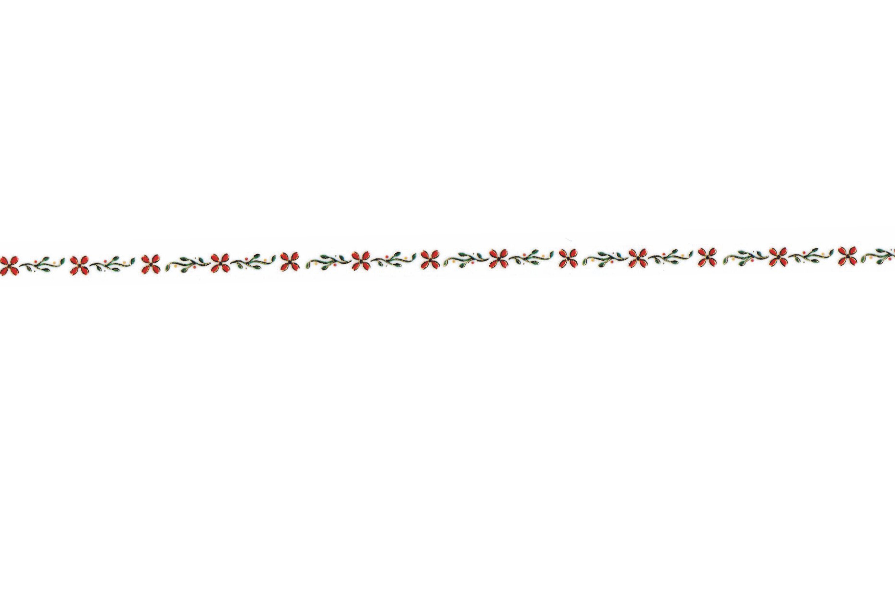 Das schmale Tape mit rot-grünem floralen Muster und funkelnden goldenen Akzenten ist ein schönes Highlight!